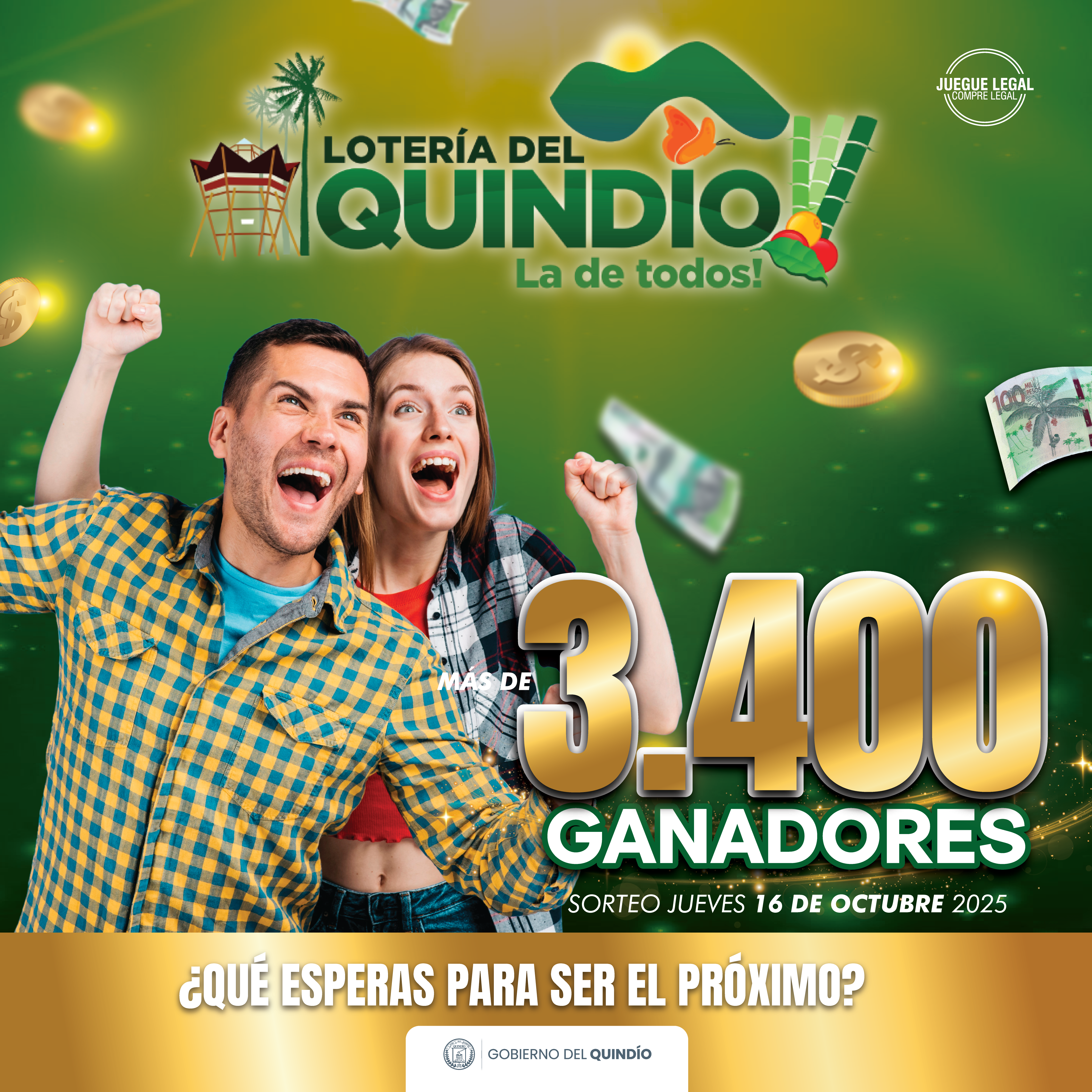 ¡Semana histórica para la Lotería del Quindío! En el sorteo 2951, un afortunado apostador se llevó el Premio Mayor, convirtiéndose en nuestro gran millonario. Este hito, es un testimonio de que la suerte sí toca la puerta de nuestros jugadores. Además, realizamos una campaña especial por Sa...